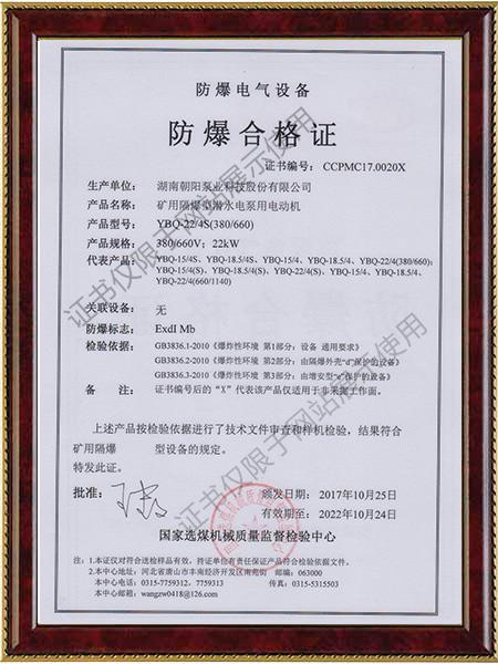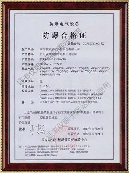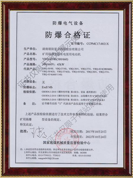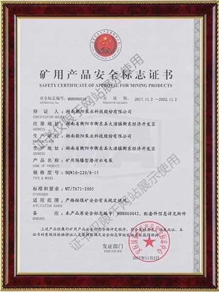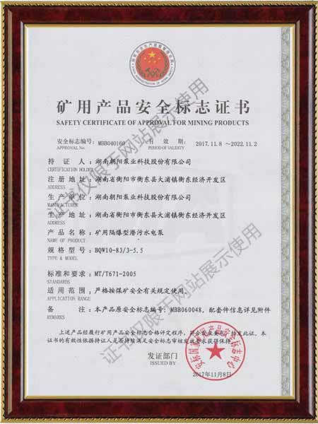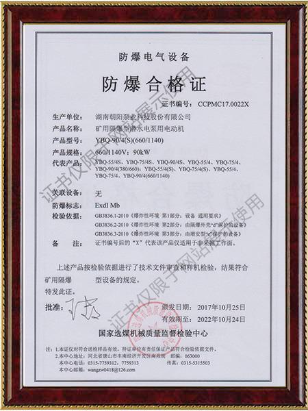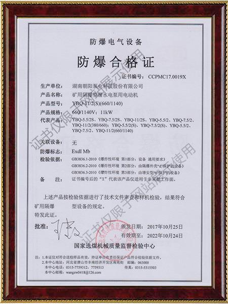 公司通過了MA煤安認證、QS生產許可認證、ISO9001質量管理體系認證